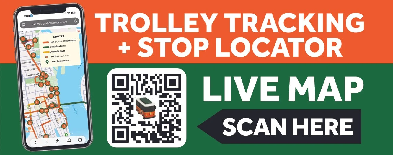 The Old Town Trolley Tours’® Trolley Tracker is an interactive map that allows riders to explore trolley routes, stops, and nearby attractions before they arrive and while they're visiting. Guests can click each trolley stop to see when the next trolley arrives and its identification number. It also shows the stop’s first and last trolley arrival times, a photo indicating the best place to wait, and a link to use their native wayfinding app for directions. The Trolley Tracker’s most powerful capability is real-time tracking of all Old Town Trolley Tours’® vehicles. The map shows the position of each vehicle and the routes for both the hop-on, hop-off tour and the Beach Bus, which services Anastasia Island and St. Augustine Beach.